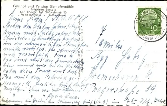 Zustand, siehe Scan, gelaufen, 1958- Karl Bächtle - ca 14 cm X 9 cm
