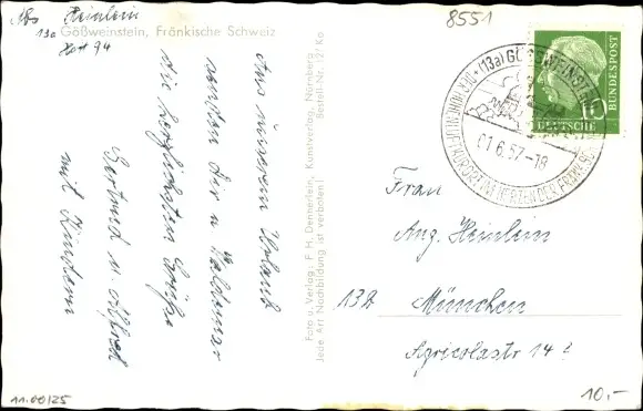 Zustand, siehe Scan, gelaufen, 1957 - ca 14 cm X 9 cm