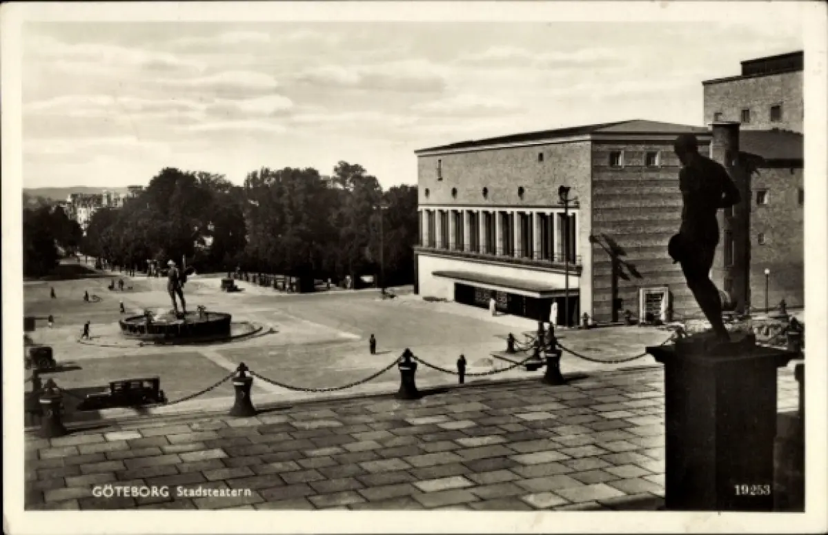 Ak Göteborg Schweden, Göteborg Stadsteatern, Statue, Platz, Architektur