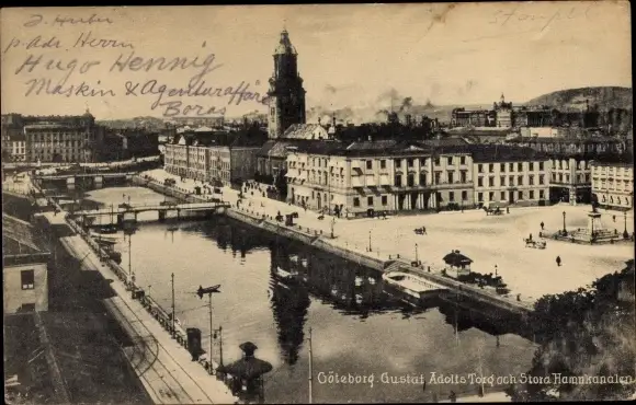 Ak Göteborg Schweden, Gustaf Adolfs Torg och Stora Hamnkanalen