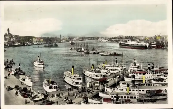 Ansichtskarte, Postkarte, Hafen, Schiffe, Boote, Dampfer, Boot
