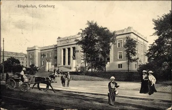Ak Göteborg Schweden, Högskolan, Kutsche, Passanten