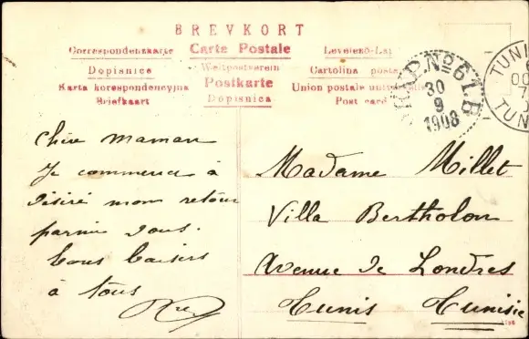 Zustand, siehe Scan, gelaufen, 1908 - ca 14 cm X 9 cm