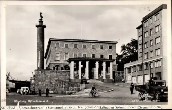 Ak Göteborg Schweden, Sjöfartsmuséet, Standbild Sjömanshustrun, Seemannsturm