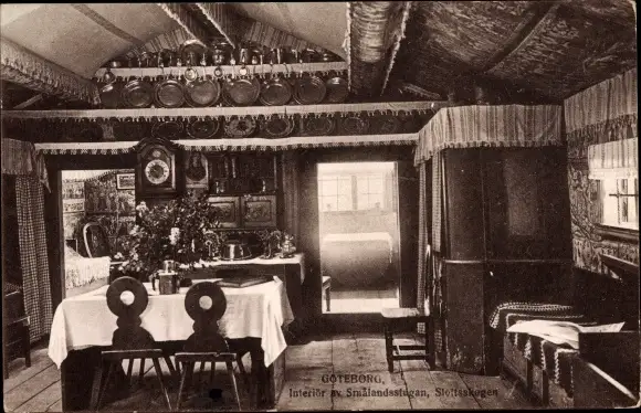 Ak Göteborg Schweden, Slottsskogen, Smalandsstugan, Interiör