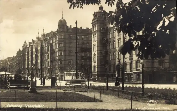 Ak Göteborg Schweden, Vasaplatsen, Straßenbahn