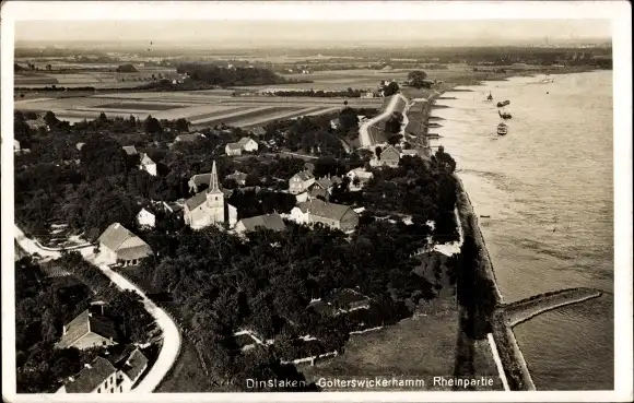 Ak Götterswickerhamm Voerde am Niederrhein, Rheinpartie, Fliegeraufnahme