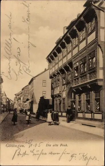 Ak Göttingen in Niedersachsen, Die alte Fink, Passanten