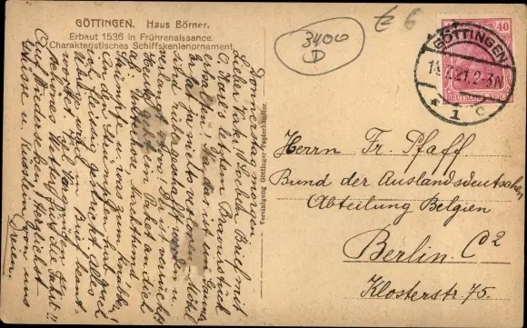 Ak Göttingen in Niedersachsen, Haus Börner, 1536, Schiffskehlenornament