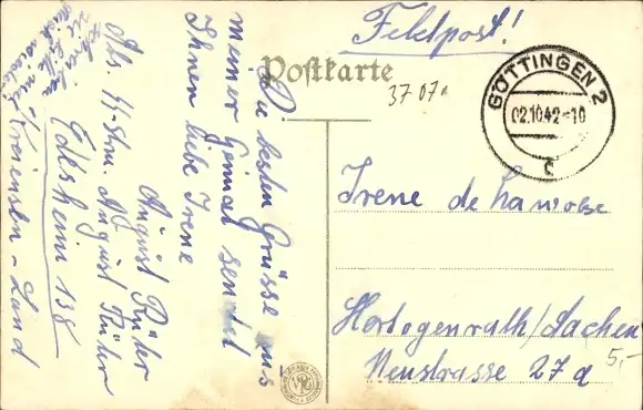 Zustand, siehe Scan, gelaufen, 1942 - ca 14 cm X 9 cm