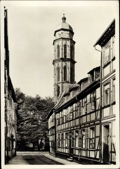 Ak Göttingen in Niedersachsen, Jakobikirche, Auktionator, Fachwerkhäuser