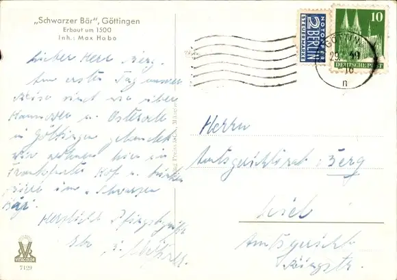 Zustand, siehe Scan, gelaufen, 1949- Inh. Max Habo - ca 15 cm X 11 cm