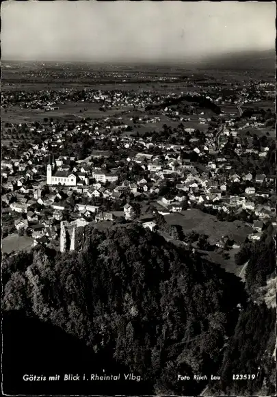 Ak Götzis in Vorarlberg, Totalansicht, Blick ins Rheintal