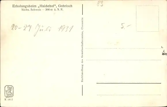 Ak Gohrisch Sächsische Schweiz, Erholungsheim Haidehof