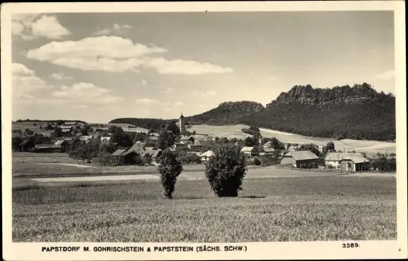 Ak Gohrisch Sächsische Schweiz, Panorama, Papststein und Gohrischstein