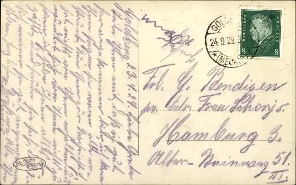 Zustand, siehe Scan, gelaufen, 1929 - ca 14 cm X 9 cm