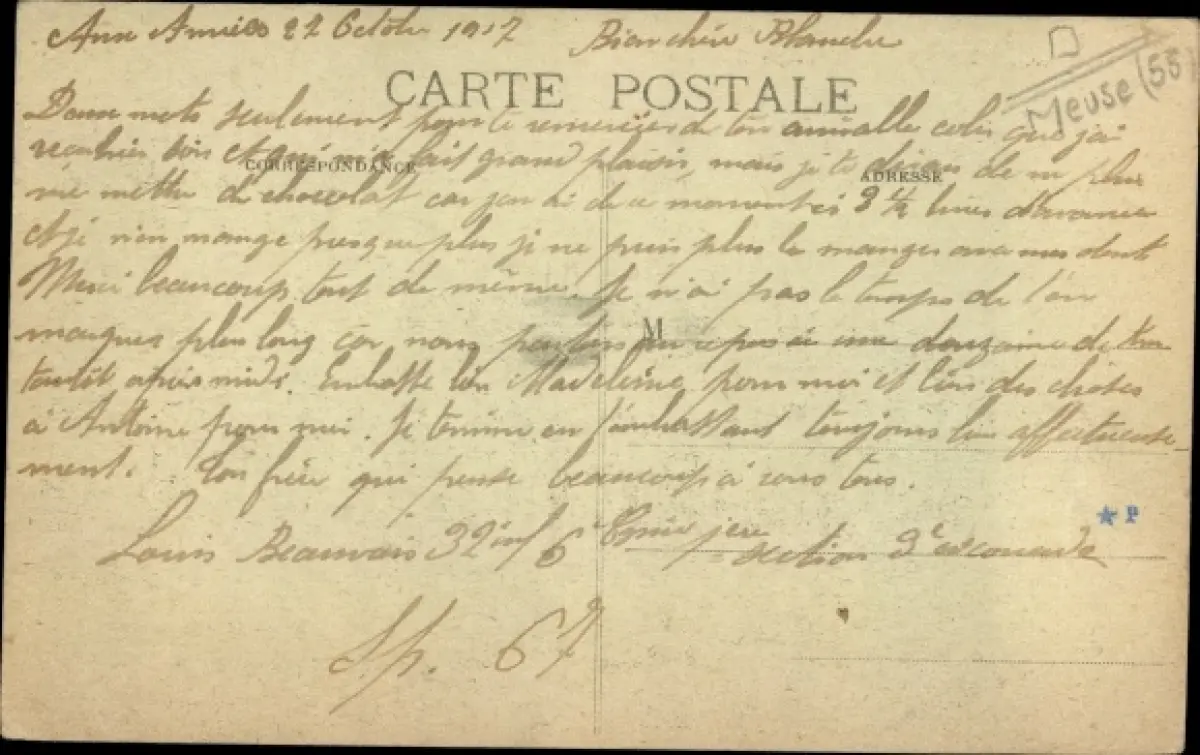 ungelaufen, Rückseite beschrieben, datiert 1917, Eckknick links oben, sonst guter Zustand
