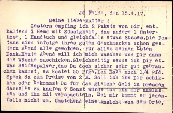 Zustand, siehe Scan, ungelaufen, 1917 - ca 14 cm X 9 cm