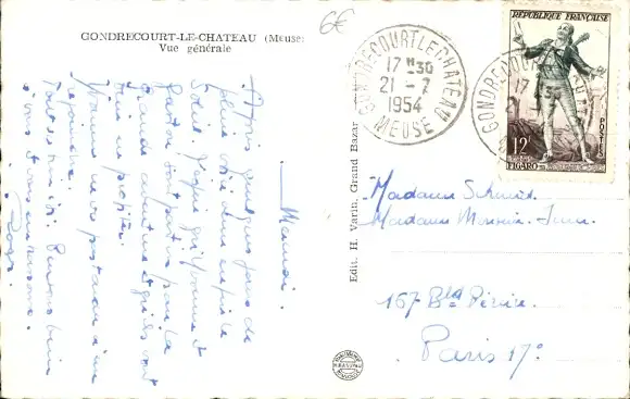 Zustand, siehe Scan, gelaufen, 1954 - ca 14 cm X 9 cm
