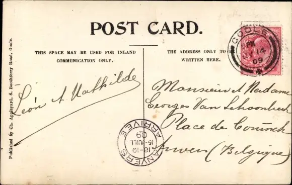 Zustand, siehe Scan, gelaufen, 1909 - ca 14 cm X 9 cm