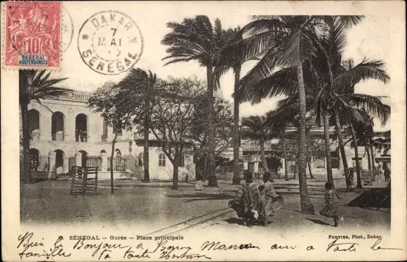 Ak Gorée Dakar Senegal, Place Principale, Palmen