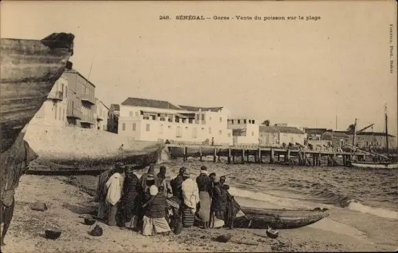 Ak Gorée Dakar Senegal, Verkauf von Fisch am Strand