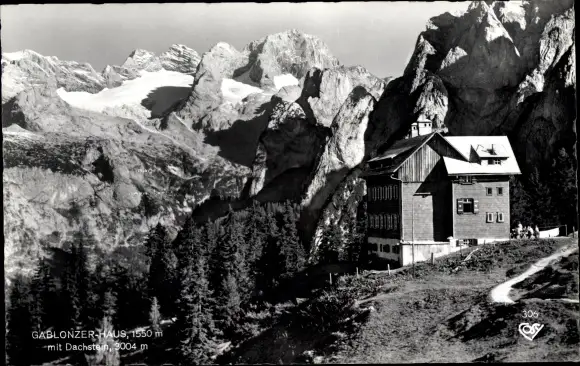 Ak Gosau in Oberösterreich, Gablonzer Hütte, Bergpanorama, Dachstein