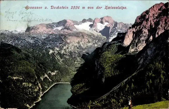 Ak Gosau in Oberösterreich, Gosausee, Dachstein, Blick von der Zwieselalpe