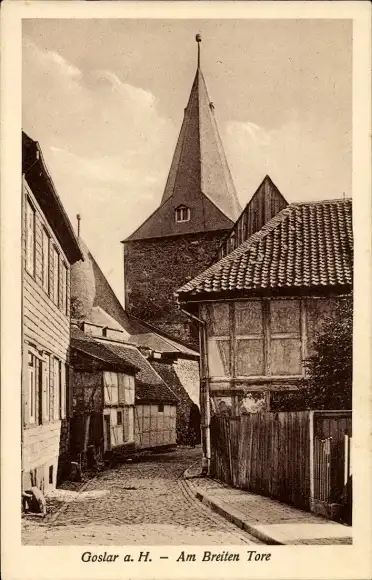 Ak Goslar am Harz, Am Breiten Tore, Fachwerkhäuser, Turm