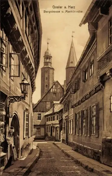 Ak Goslar am Harz, Bergstraße, Marktkirche