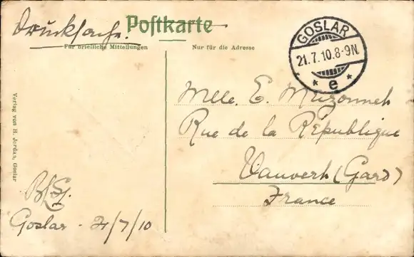 Zustand, siehe Scan, gelaufen, 1910 - ca 14 cm X 9 cm
