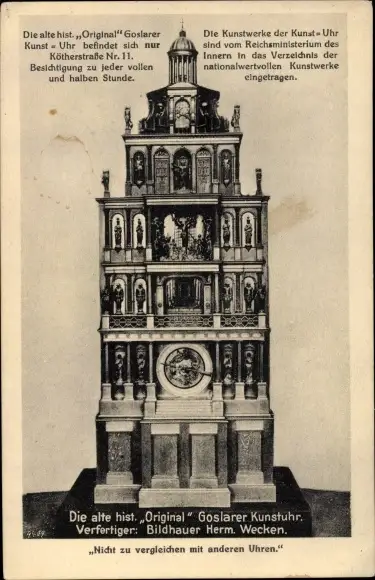 Ak Goslar am Harz, Goslarer Kunstuhr, Bildhauer H. Wecken