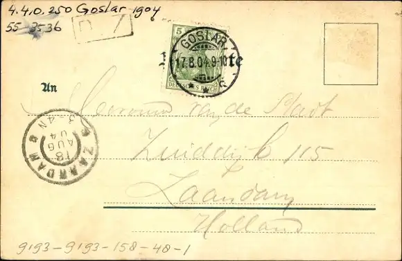 Zustand, siehe Scan, gelaufen, 1904 - ca 14 cm X 9 cm
