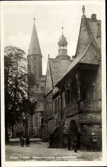 Ak Goslar am Harz, Rathaus-Aufgang, Marktkirche