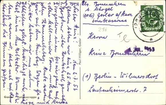 Zustand, siehe Scan, gelaufen, 1953 - ca 14 cm X 9 cm