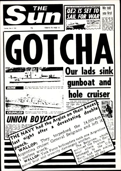 Ak Gotcha, The Sun Titelseite 1982, Falklandkrieg