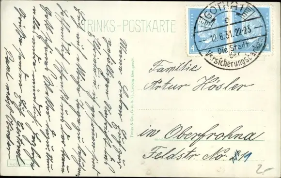Zustand, siehe Scan, gelaufen, 1931 - ca 14 cm X 9 cm
