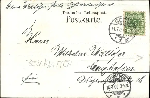 Zustand, siehe Scan, gelaufen, 1900 - ca 14 cm X 9 cm
