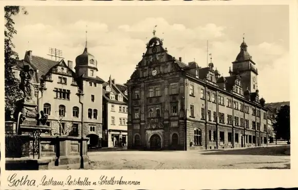 Ak Gotha in Thüringen, Rathaus, Ratskeller, Scheller Brunnen, historische Architektur