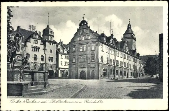 Ak Gotha in Thüringen, Rathaus mit Schellenbrunnen und Ratskeller