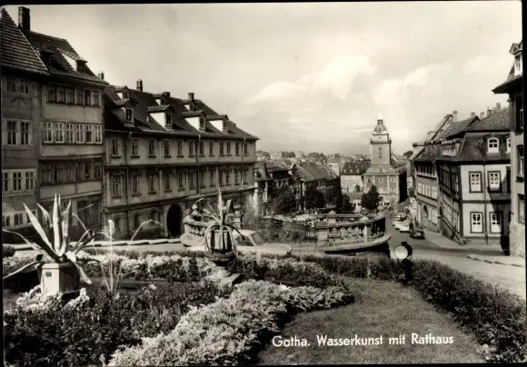 Ak Gotha in Thüringen, Wasserkunst mit Rathaus