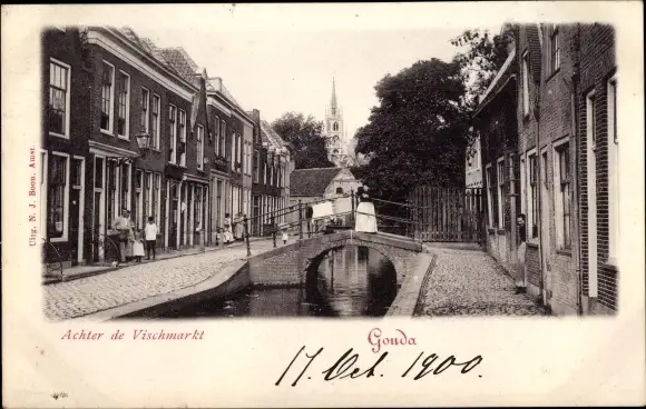 Ak Gouda Südholland Niederlande, Achter de Vischmarkt