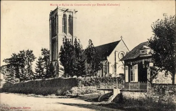 Ak Goustranville Calvados, L'Eglise et la Mairie