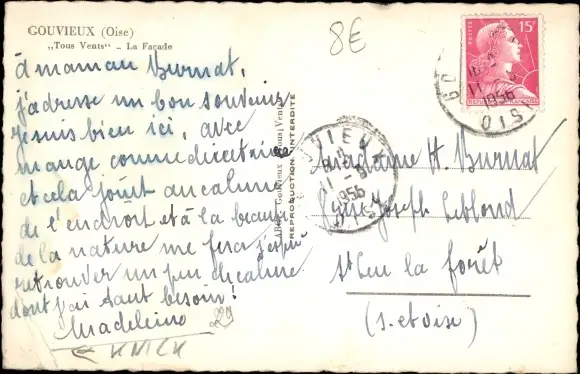 Zustand, siehe Scan, gelaufen, 1956 - ca 14 cm X 9 cm