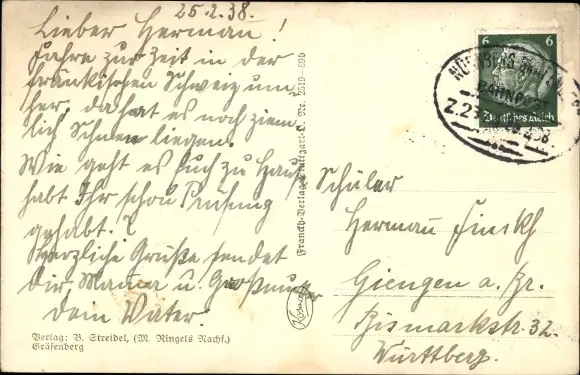 Zustand, siehe Scan, gelaufen, 1938 - ca 14 cm X 9 cm