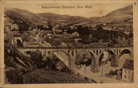 Ak Gräfenthal in Thüringen, Gesamtansicht, Viadukt