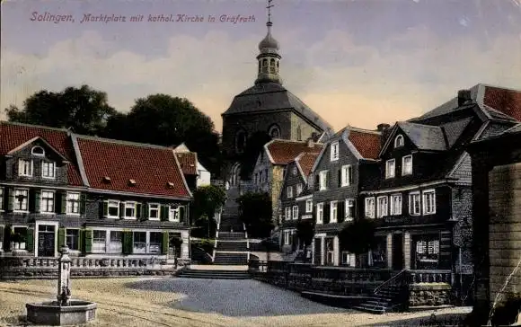 Ak Gräfrath Solingen, Marktplatz, katholische Kirche