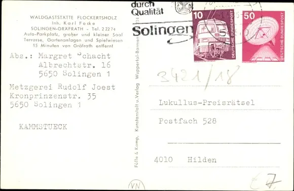 Zustand, siehe Scan, gelaufen- Inh. Karl Focke - ca 9 cm X 14 cm