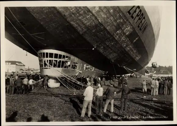Ak Graf Zeppelin, LZ 127, Landungsmanöver über einem Flugfeld