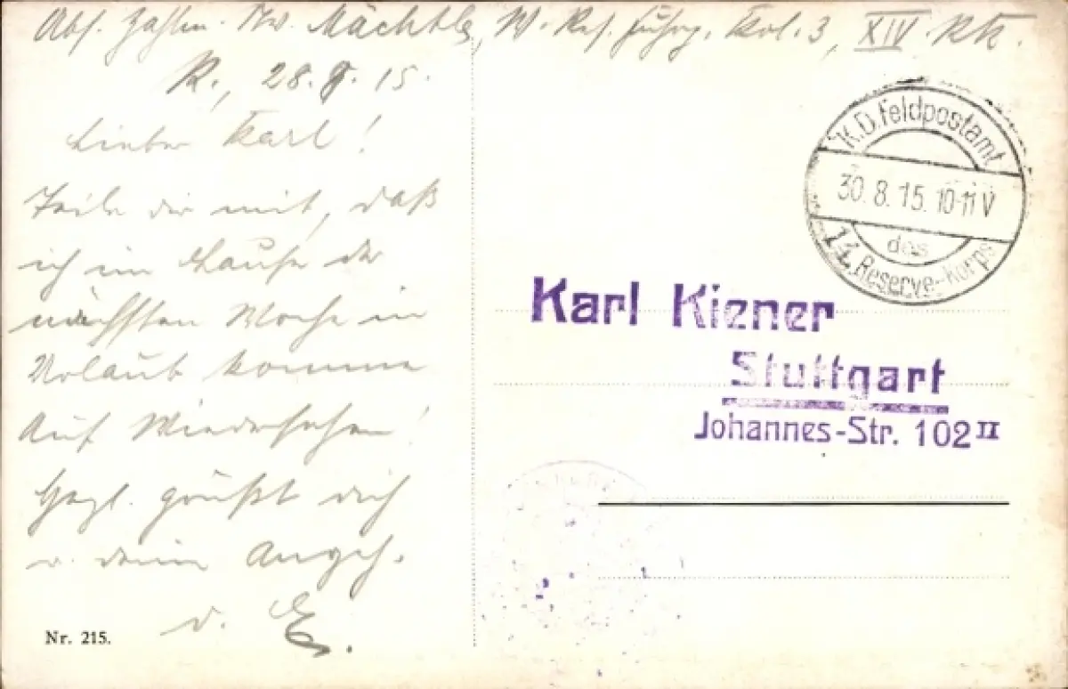 Zustand siehe Scan, gelaufen, 1915 - ca 9 cm X 14 cm